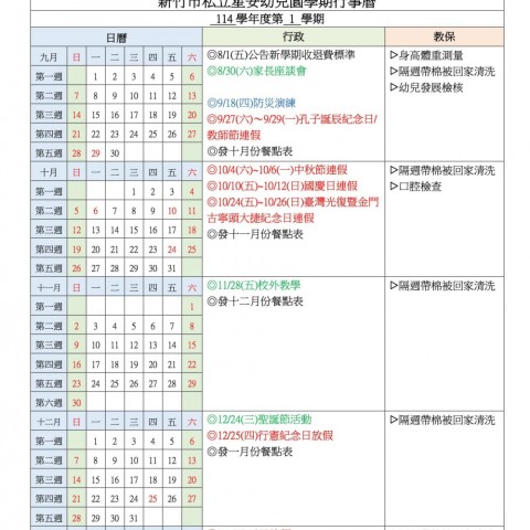 | 溫馨說明 | 本作息表僅供參考,老師會依據寶貝個別需求(如睡眠、進食習慣)適度調整。 0-1歲嬰兒依據喝奶時間及睡眠需求,採彈性照顧模式。 戶外活動時間會配合天氣狀況調整,雨天將改為室內大肌肉活動。 每日會記錄寶貝的進食、睡眠、如廁狀況,供家長參考。 特殊節日或主題活動期間,作息會略作調整,並事先通知家長。 |