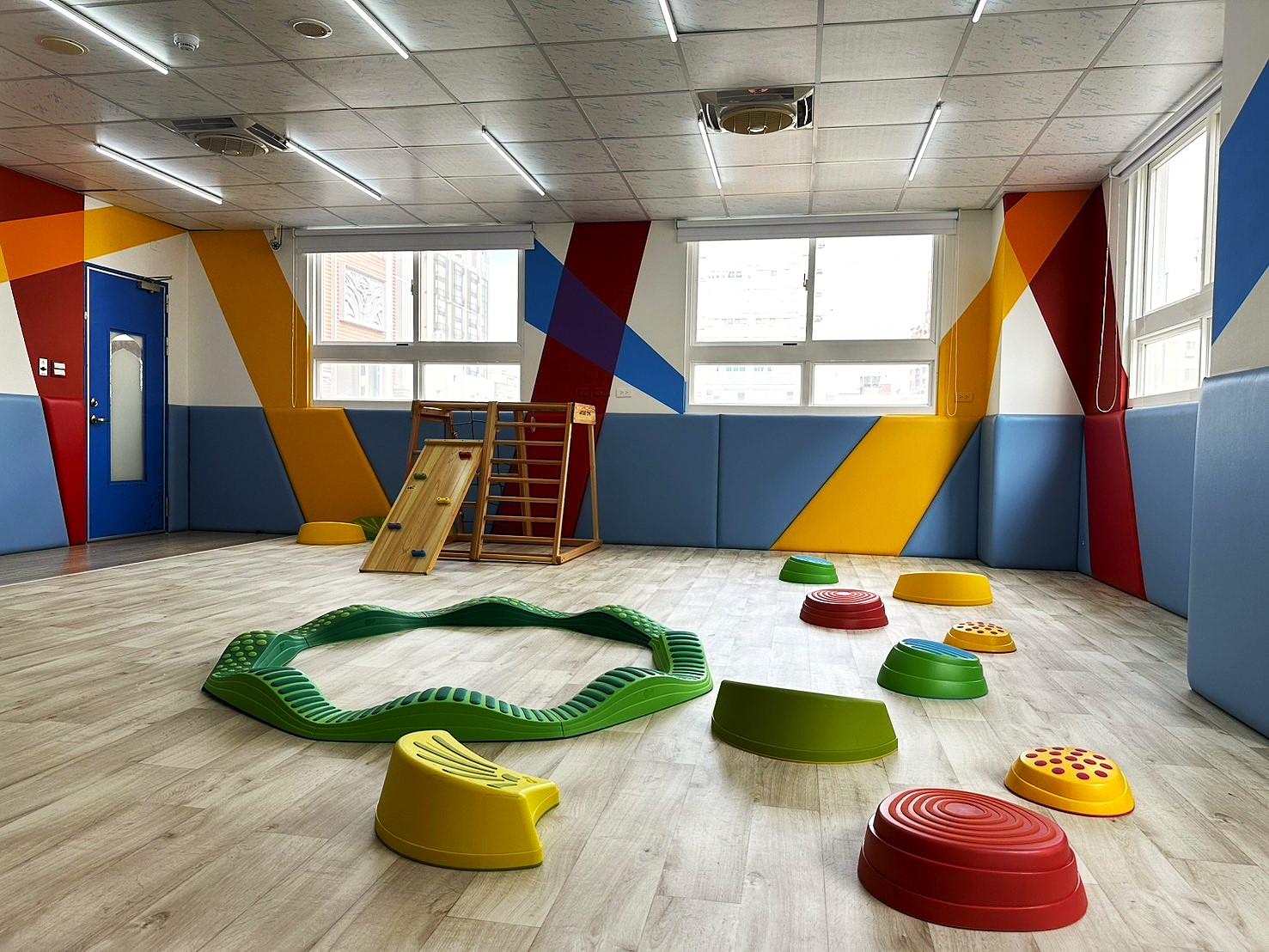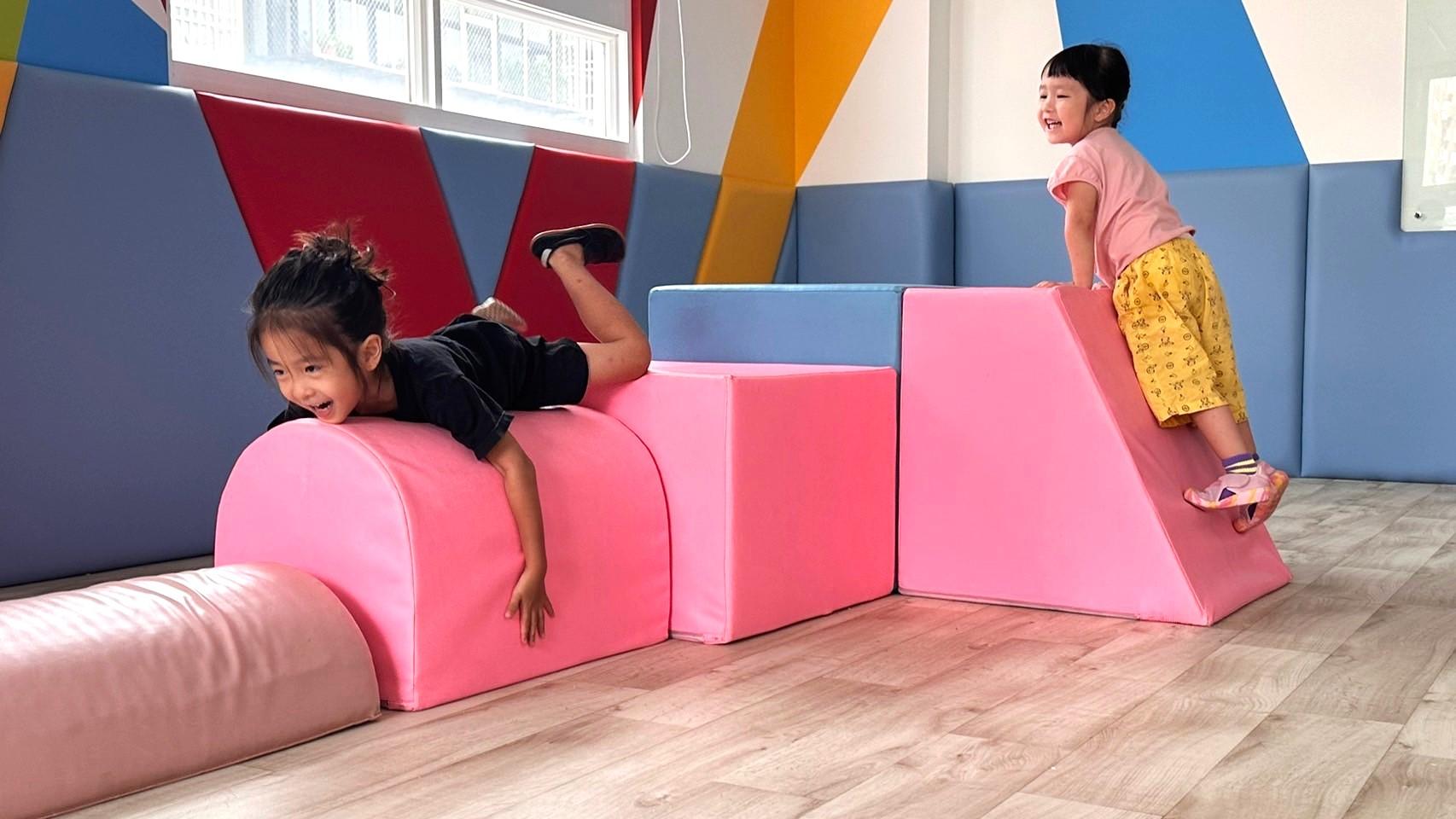 體能遊戲 軟墊爬鑽、滑步車練習 丟接大球、平衡木行走 |
